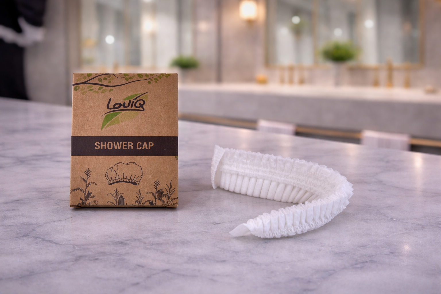 A lightweight shower cap made from biodegradable corn-based materials. Designed for convenience and easy use while supporting a more sustainable alternative.