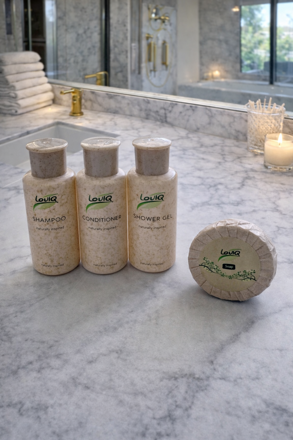Select your preferred sizes, choose from shampoo, conditioner, shower gel, body lotion, or hand wash, and let our graphics team create bespoke packaging that enhances your brand’s presentation.