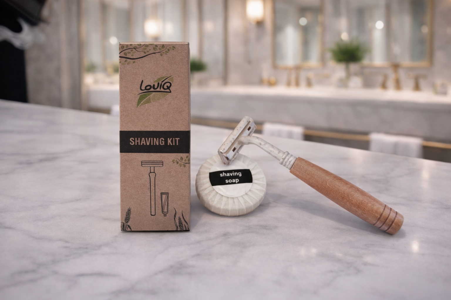 A convenient shaving kit featuring a razor made from wheat or bamboo materials. Provides a smooth, comfortable shave while supporting an eco-friendly approach.